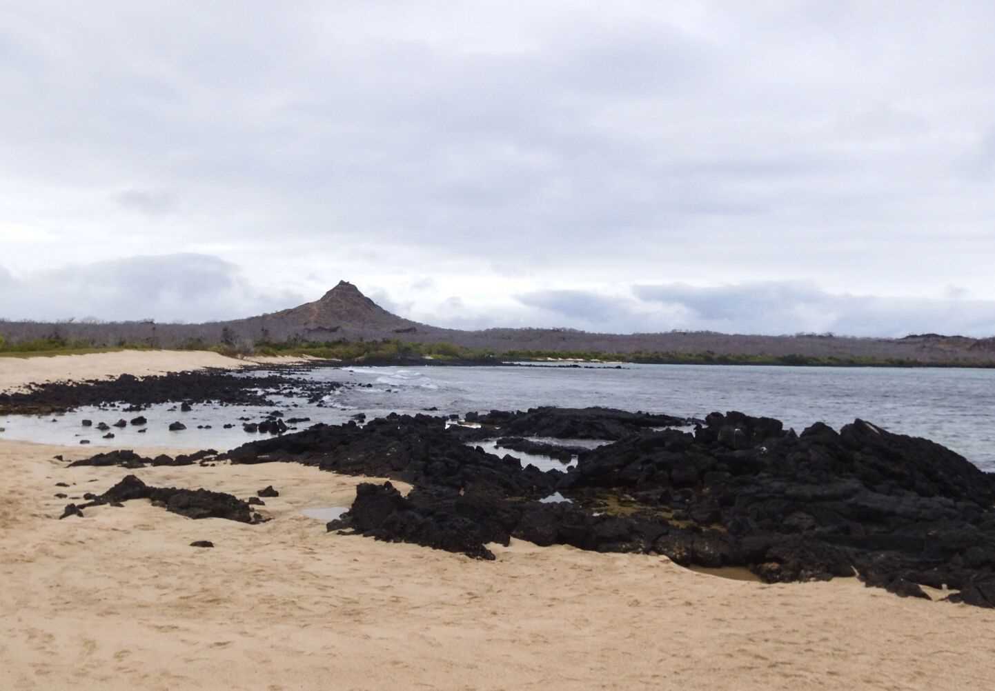 In the late afternoon, we circumnavigated Daphne Major Islet. We found lots of Nazca boobies (Sula granti) perched on the rocks as red-billed tropicbirds (Phaeton aetereus) passed by. A British American couple from Oxford University studied Darwin finches for approximately 40 years here. The couple studied the beak shapes of the birds in hopes of understanding the process of evolution in these birds that breed very quickly.