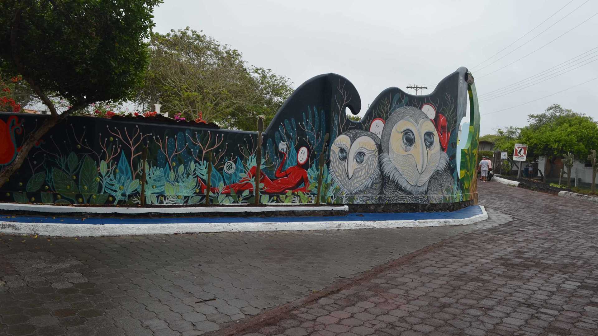 Today we visited Puerto Ayora, the tourist capital of the Galapagos with the largest human population. Right from the start we could feel the hot season and conditions typical of this island. We saw a few places with graffiti, the wall where the bus picked us up and the cemetery were particularly beautiful and represent the deep connection between nature and humans.
