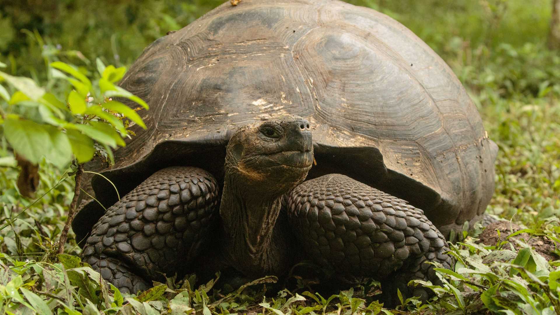 Just a few feet from where we started, we found a female tortoise feeding on the vegetation of the area. We kept walking to a pond where tortoises gather to cool off in the water; they use the mud to protect their skin. We stopped for a few minutes to appreciate the beauty and magnificence of these giant reptiles enjoying the water.