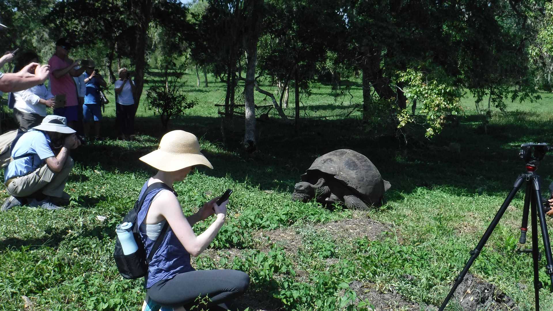 After a wonderful lunch at the local farm, we walked for about an hour and saw many tortoises of different sizes in the wild. These giants were wandering around a water pond and along the trails located in this forested area of the Island of Santa Cruz. It was wonderful to see them in their natural environment, where many of them have lived peacefully for years and years.