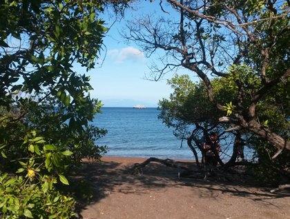 Today we started our day in the western side of Santiago Island. After an early wake up call, we landed at Espumilla beach. This site is covered with an interesting mix of volcanic ash and tiny pieces of olivine, where we sea turtle tracks and holes made by ghost crabs. We continued through an area covered by huge Palo Santos trees, filling the fresh morning air with an incense fragrance. A couple Galapagos hawks and mockingbirds were spotted during our walk, and then we returned to the beach headed back to the Islander.