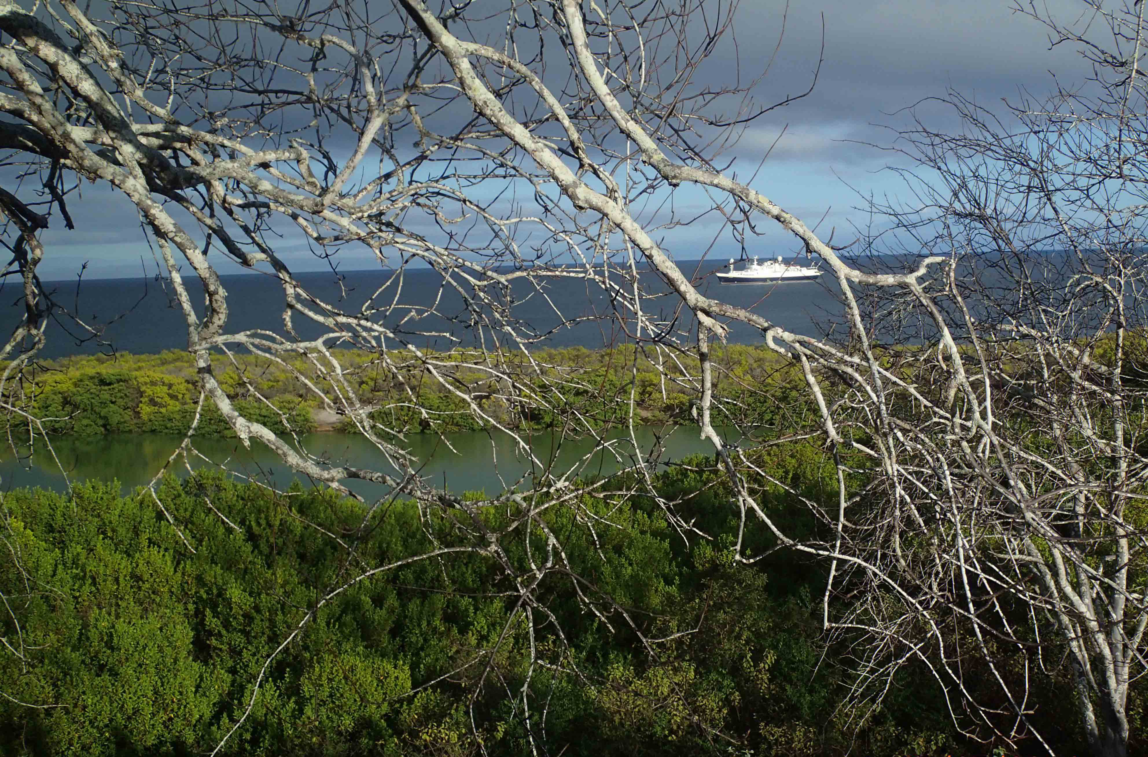 After spending two days on the western realm of Galapagos the National Geographic Endeavour arrived today to the central area of the archipelago. Early this morning, we anchored in the area of Espumilla Bay, located on the western side of Santiago Island. Our day began with a wet landing on a sandy beach, and from there we started our walk to the top of a small cone. While walking through the button mangrove forest, we observed some small land birds such as small ground finches, Galapagos mockingbirds, and Galapagos doves. Some of our guests took the option of the photography walk along the coast and found the many nests of the green sea turtles built several weeks ago. Another great sighting this morning was the Galapagos hawk; this is the top predator in Galapagos and it often hangs around the turtle’s nesting area.
