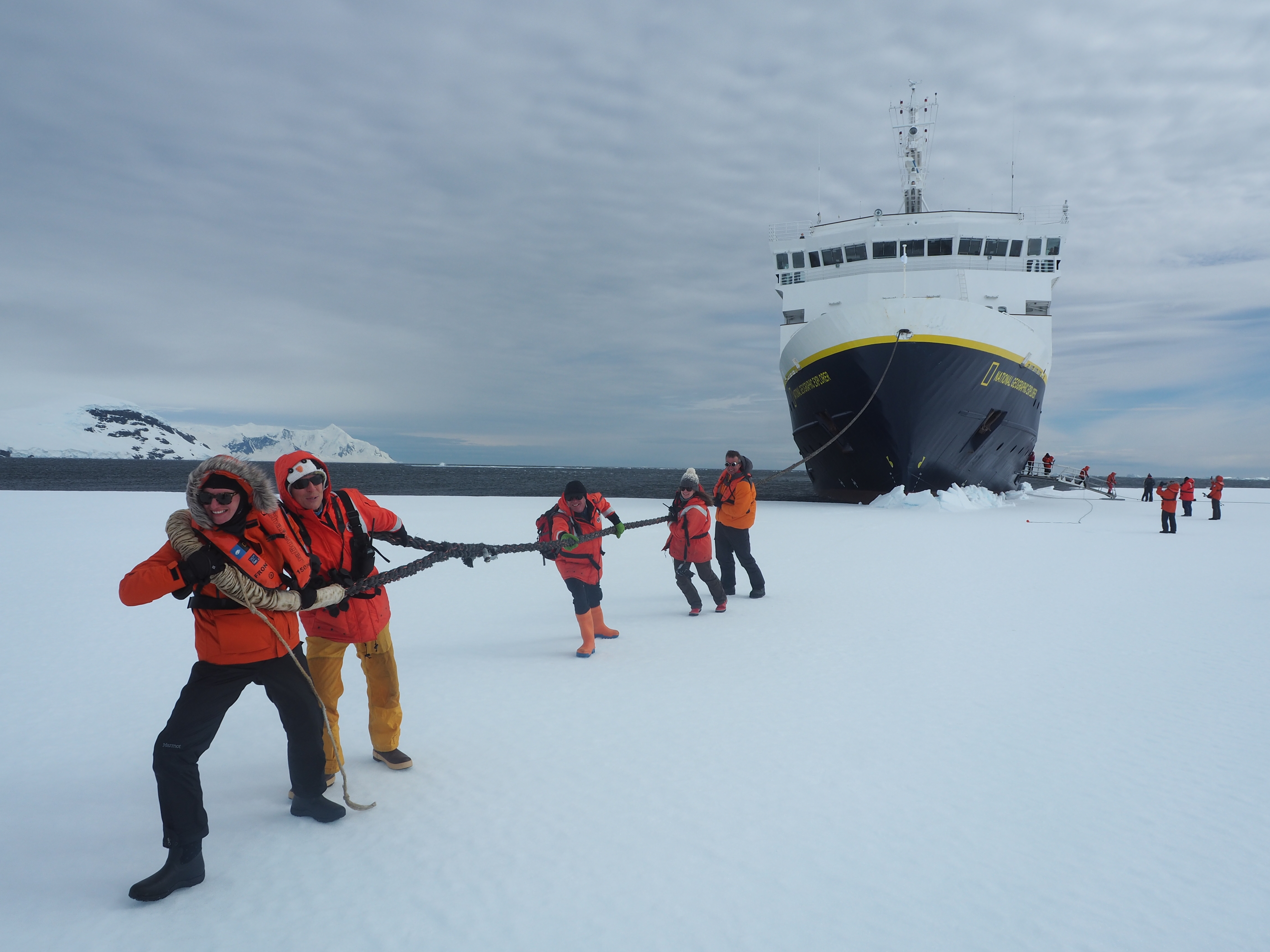 We woke up early in the morning as National Geographic Islander navigated along the northern part of Isabela Island. Slowly the sun appeared above the clouds surrounding Volcano Wolf. We spotted our first birds as Galapagos fur seals returned to shore from their night hunt. We enjoyed a great breakfast. Afterward, expedition leader Vanessa called everyone to the bow to celebrate as we crossed the equator. Our guests happily crossed the line. Approaching Punta Vicente Roca, the visitor site, we spotted Galapagos sea lions and a good number of ocean sunfish. The first activity of the day took place as we dropped anchor at Punta Vicente Roca. This is a spectacular geological site. The combination of the former volcano’s tall cliffs and the tuff cones formed later adds an amazing contrast to this unique visitor site. Our best tools for exploration, our Zodiacs, were lowered down, and off we went to explore the coast. We observed Nazca boobies and blue-footed boobies resting on the small ledges of the tuff cones. Galapagos sea lions swam close to our Zodiac, and Galapagos penguins rested on a broken piece of the tuff cone after feeding. What a wonderful sight! In a calm area, we found a good number of Pacific green sea turtles. The morning’s activities ended with snorkeling. Pacific green sea turtles, plenty of colorful fish, Galapagos marine iguanas and flightless cormorants surrounded us. It was a phenomenal experience! The ship was repositioned toward Fernandina Island. The youngest island of the archipelago, Fernandina is a highlight of our expedition. This island shows our guests the beginning of life. We observed animals thriving in the hostile environment. Pioneer plants like lava cacti grow on the lava fields, breaking down rocks little by little to create soil for the next generation of plants. Punta Espinoza is known for its huge colony of Galapagos marine iguanas. It is hard to distinguish the iguanas from rocks since they are so dark in color. On the other hand, colorful Sally Lightfoot crabs added contrast to the young, dark lava fields. We ended our walk as the sun was setting, returning to the ship with great memories. It was a fantastic day in the western part of the archipelago.