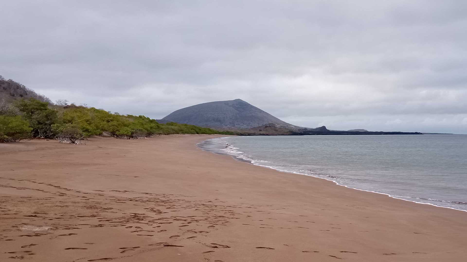 A long, mostly smooth overnight navigation took us back to the central islands of the Galapagos archipelago. We awoke to find gray skies and a chilly breeze; these were pleasant conditions for the kayaking and hiking we had scheduled for this morning. All those who went to the shore enjoyed walking the long calm beach, and watching blue-footed boobies diving offshore, or exploring the mangrove and palo santo forests where finches and warblers were feeding among the branches. The kayakers paddled along the dramatic cliffs and inlets to Buccaneers Cove and appreciated the brisk following wind that helped push them along. Everyone worked up an appetite for our late breakfast!