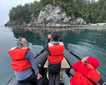 The last day of our expedition brought us to Santiago Island; here Charles Darwin spent nine days on land walking and exploring, and we were following his footsteps. In the morning, we visited the beautiful beach of Espumilla. An easy stroll along the mangroves and soft sand was offered before breakfast. We observed blue-footed boobies diving and Galapagos hawks. Afterwards, we enjoyed kayaking at Buccaneer’s Cove with great weather conditions: the sea was smooth, and the water was crystal clear. It was a great opportunity for deep water snorkeling with colorful fish and huge schools of sardines and black striped salemas. The afternoon brought us to Puerto Egas, a great place to enjoy time at the black, sandy beach. We also offered an optional amazing hike along the coastal area. We became amazed explorers, as Galapagos is a learning experience!