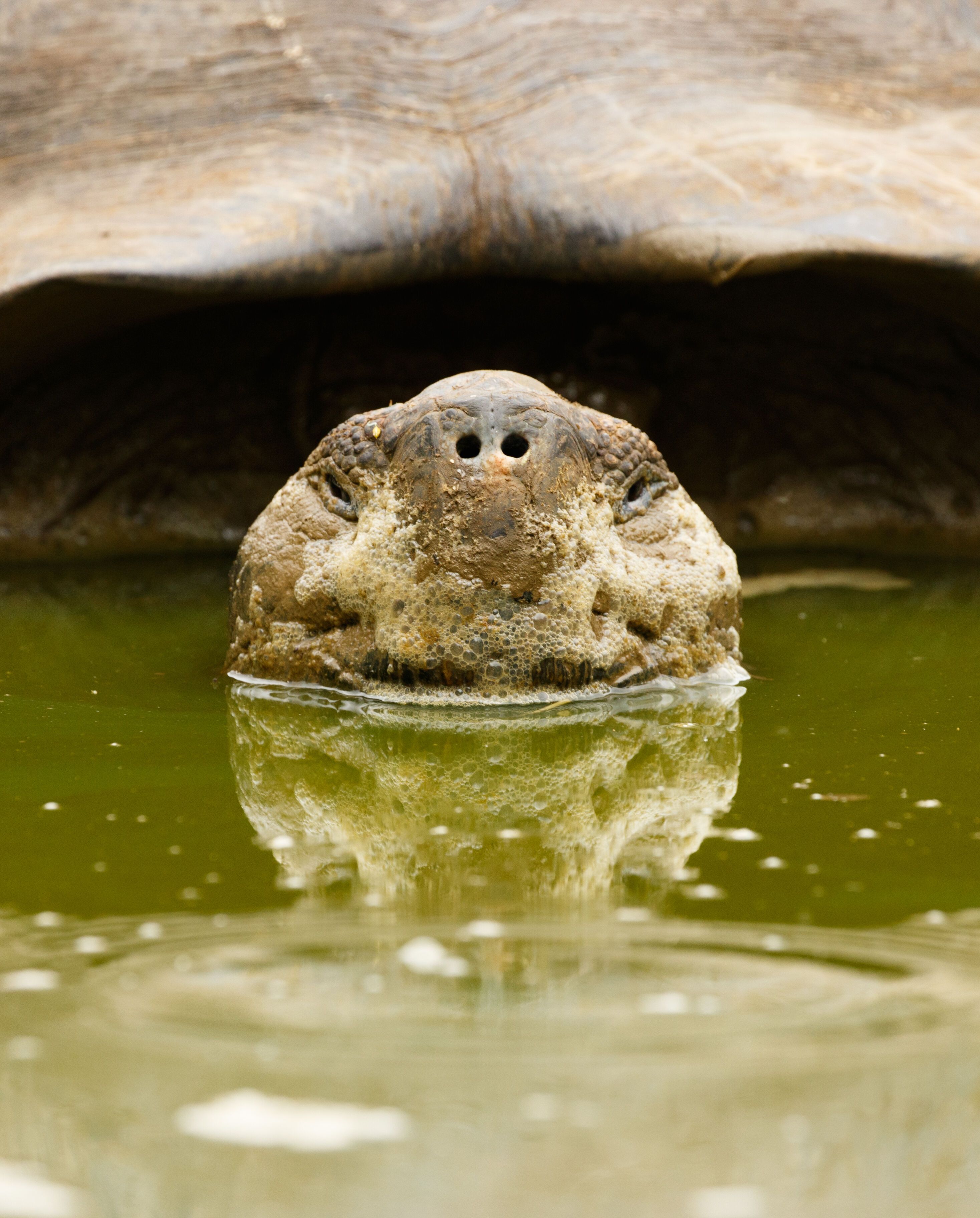 We woke up to super calm waters off the northern coastline of Floreana Island. Perfect conditions for a bit of kayaking among the offshore islets near Post Office Bay! Brown pelicans, egrets, green sea turtles, and red, black, and white mangroves…a peaceful environment for an hour or so before breakfast. Some guests went straight to the beach to walk a few yards through saltbushes and found themselves facing the famous “barrel” of Post Office Bay. It’s been over a century since the barrel was first placed here for use by whalers to exchange correspondence and carry back letters of business, or perhaps letters to loved ones. Today, postcards fill the barrel, but the turnover is fast. Each day, some of the postcards are taken for delivery while others are left behind in hopes that someone will continue the tradition and hand-deliver them in the weeks to come. Between breakfast and lunch, we played in or on the water around Champion Islet, just to the northeast of Floreana Island. We didn’t make a landing but explored by Zodiac, including a birdwatching circumnavigation followed by deep-water snorkeling in incredible waters with parrotfish, angelfish, pufferfish, damselfish…all kinds of fish! Sea lions buzzed by, desperate to draw attention and get a reaction out of us, which they did. Squeals and shrieks were heard. After an instructional briefing on iPhone photography and a presentation on Charles Darwin in the afternoon, we went ashore on the main island of Floreana. There has been quite a drought this year and not much rain the previous year either. The land was dry, the vegetation was brittle, and dead leaves were everywhere. But all that is fine for the native and endemic species; after all, they’ve been through this before, over the millennia, and survived. The stress is on the introduced species who depend on higher amounts of freshwater for survival. While their defenses are down and populations are stressed, now is the time to really push for programs to eradicate introduced species. Floreana Island is ready for restoration. The National Park and collaborating NGOs are preparing Floreana to receive native species that were once thought doomed for extinction. Giant tortoises, Floreana mockingbirds, and racer snakes may yet survive and prosper with the help of these organizations. We spent the afternoon following an easy trail from a dark-colored beach of mineral origin and over the isthmus to a white, organic beach where green sea turtles were riding the breakers offshore. The turtles are not quite ready to come ashore and lay eggs, as temperatures are still too low for another month or so. But a great blue heron and frigatebird were checking out the scene, just in case someone tried for an early nesting. It will be a couple months before hatchlings try to race to the ocean in the dark of night. We returned to our base of operations as the sun set low on the horizon. National Geographic Islander II was waiting for us with hot water and the comforts of home.
