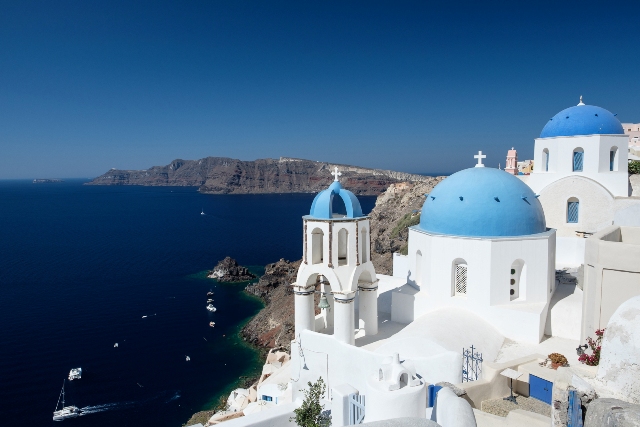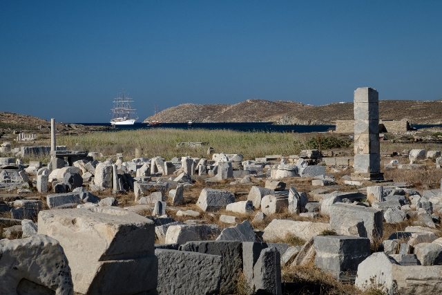 Every day a surprise, every day a unique experience. Sea Cloud spent the night in the caldera at Santorini and we started our day with the amazing picture of the blue Aegean and the caldera in front of our eyes when we woke up, waiting for us to explore them. The local tender boat took us out and we drove up through the island of Santorini. First was Oia, the traditional city of the island, with whitewashed houses and blue domed churches. We shopped, explored, and walked all over before enjoying a drink in the cafes that overlooked the great view of the caldera. Leaving Oia we then went to lunch and tasted the local flavors and the famous products of the island.