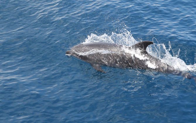 In the afternoon, we traveled through the Sapodilla Cayes Marine Reserve and the Port Honduras Marine Reserve to the mouth of Payne’s Creek for our afternoon Zodiac exploration through the estuary and into mangrove creeks and lagoons. A sudden and hard downpour delayed our departure for a few minutes and as we departed the ship, a small pod of four bottlenose dolphins feeding was a great start to our adventure into the waterway.