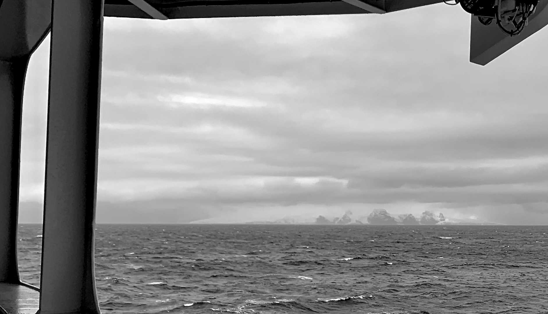 We explored the middle section of the South Sandwich Island arc today. We have traveled more than one fifth of the way around the globe, from 90 degrees 44 minutes West, near Peter I Island. Hovering between 72- and 58-degrees south latitude, the great circle is significantly smaller than it is at the equator. Eighteen days of voyaging passed so quickly, but it also seems, well, like we started on the other side of the world! Throughout the day, we passed through fog, clouds, sunshine and snow…everything you might expect from these stark volcanic masses rising out of the abyssal sea, one of the most remote island chains in the seven oceans.