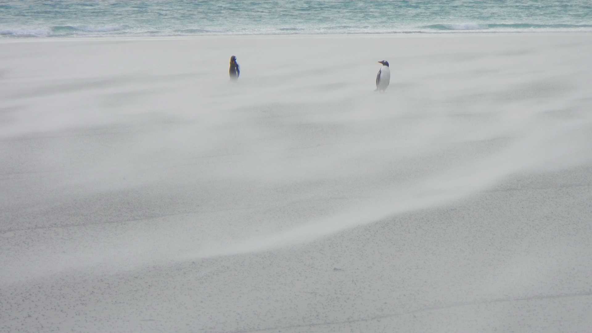 We began our day with a windy morning on a beautiful sandy beach. Saunders Island is full of wildlife. The tussock grass blew in circles as black-browed albatross chicks rested in their sheltered ravine. Magellanic oystercatchers went about their business in an atypically quiet way, while Magellanic penguins tended to their young near the entrances of their burrows. Gentoo penguin chicks tirelessly chased their parents in hopes of another feeding. The sun was shining and the wild world went about its daily adventures while we watched, smiling.
