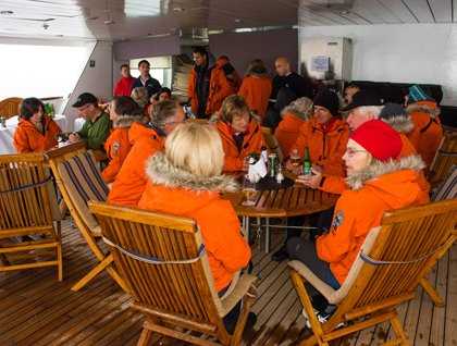 There has been plenty to do during the crossing, such as lectures, more bio-cleaning of all our equipment and clothing, a special dinner last night, and a little added mid-morning treat on the aft deck—beer, pretzels, and bratwurst, just in case we haven’t gotten enough to eat already!