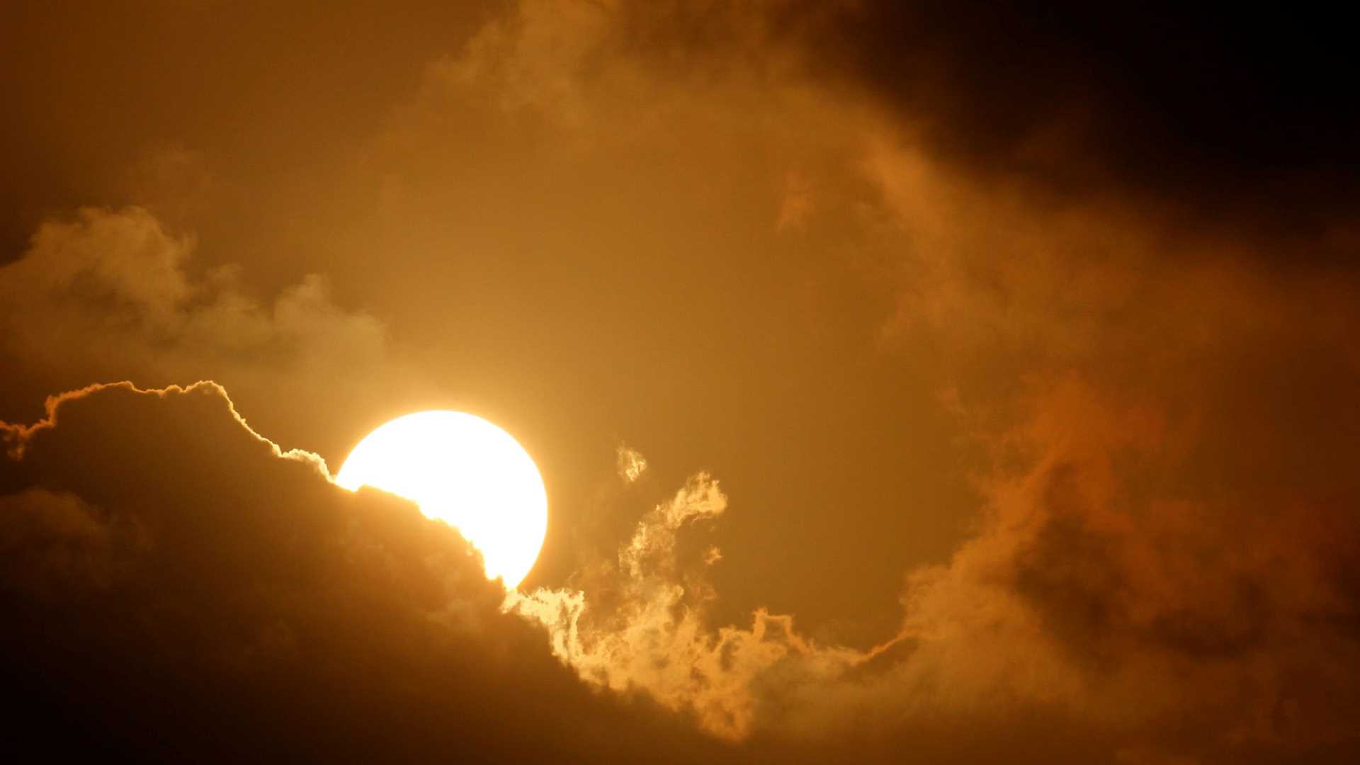 highest tips of the parade of cumulus clouds were painted pink. Clouds on the