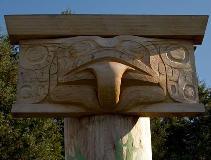 National Geographic Sea Bird cruised south overnight and anchored this morning near the southern tip of the Haida Gwaii archipelago, which includes over 200 islands. It was sunny and very pleasant for our visit to the ancient village site and for our scenic small boat tours around the nearby islets. SGang Gwaay (Wailing Island) is within the Gwaii Haanas National Park Reserve and National Marine Conservation Area Reserve and has been a World Heritage Site since 1981. Also known as Ninstints, after a reigning chief, the SGang Gwaay Linagaay village was a major winter home of the Kunghit Haida. Concealed and protected against enemies, it thrived until communicable diseases brought by Europeans devastated the population and the people moved to the north. Many poles and artifacts were removed and only house pits and mortuary poles remain as a powerful legacy of Haida heritage. They can still be seen today as they erode back to the earth. We visited with the Watchmen who act as guardians and care for this sacred site during the summer, listened to their stories as they guided us through the area, and felt their connection with the land and their ancestors.