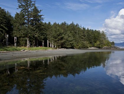 The light was gorgeous. Warm sunlight filtered through the forest decorating its thick carpet of moss, as each group made their way along the narrow, well-worn trail. Those of us in the village site enjoyed warm sun, reflections of poles on water, a chance to photograph the changing light and hear the stories passed down by ancestors to our hosts, the Watchman, in this place that has been stopped in time. The Watchman spend much of their summer season taking care of the poles by removing lichens, moss and small plants that begin to take hold...the natural way of the coastal temperate rain forest. The kindness and generosity we all continue to experience throughout Haida Gwaii has left an impression. Our Haida host Linda Tollas and the watchmen were no exception. From the two young Haida we spoke with, we saw the dual world they inhabit. The ever present stance of one foot in the physical world, one foot in the spiritual world. Through their eyes we experienced the importance of a living culture based on ancestral knowledge which creates a foundation to build a future. Skill is taught by observing and doing; from that foundation a future can grow that includes an ever changing technological world whose foundation for the Haida, is a living culture. As guests we saw the importance of bearing witness to this accomplishment, and it would be easy to return home and share the stories of what we saw in the Haida’s thriving and beautiful corner of this planet.