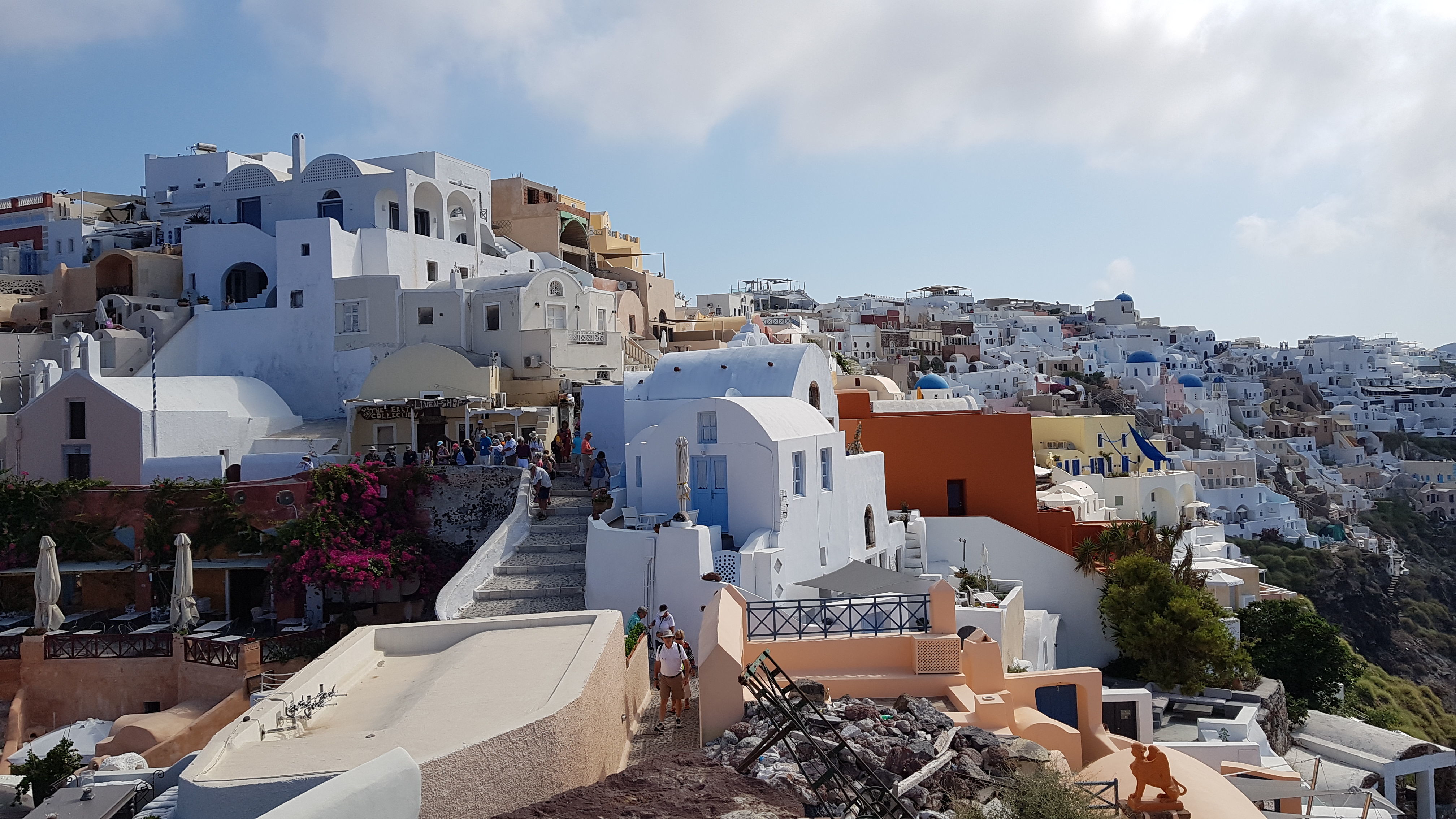Once ashore in Kamáres we boarded coaches for our first stop, the beautiful Castro. On our way we saw the dovecotes built by the early Venetian inhabitants who considered the birds a delicacy. They also used the guano, like on Tinos, for fertilizer. We walked through the labyrinthine lanes of the Castro admiring the architecture and the fanciful chimney pots. These villages had no urban plan but grew organically which gives them their character. As we saw on Paros the islanders continue to use their architectural past. I noticed a home that used an ancient Ionian column as a support column.