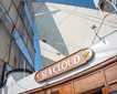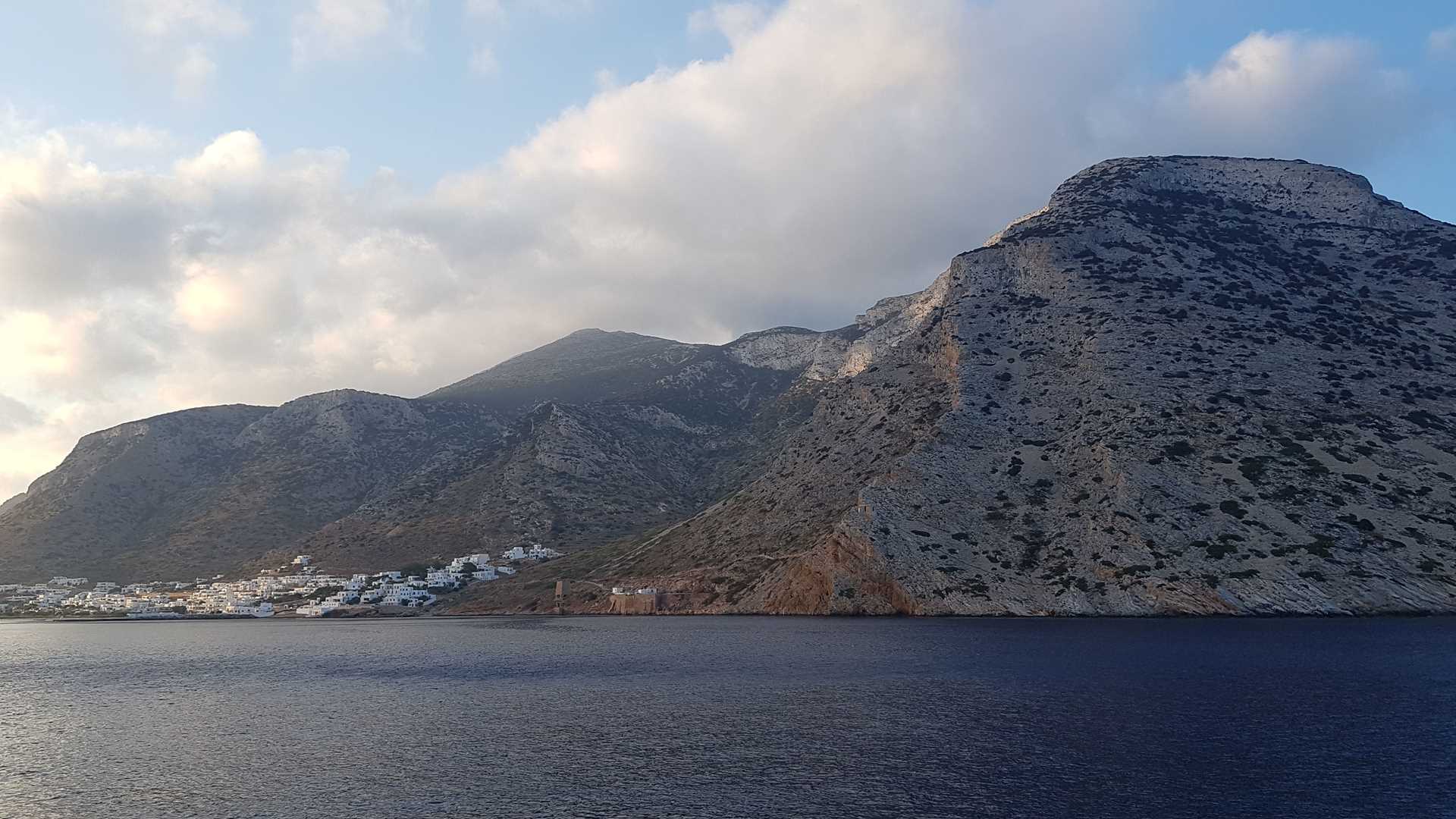 There is no defensive wall in the Castro and so the inhabitants built their homes with the rear facing outwards and since there were no windows or doors it effectively served as a continuous wall. Some of us climbed down to the majestically sited Church of the Seven Martyrs situated on a rocky headland taking the full brunt of the sea. Its brilliant white and blue dome against the cerulean sea was breathtaking. Of course we had to climb back up! There were some great pottery shops in Kamáres and a number of us made purchases. Our final destination in this tranquil harbor was the beach—soft sand and perfect water temperature. Most of us took advantage of an invigorating swim before getting a tender back to Sea Cloud. Sailors went to their stations at 2 p.m. and we were at full sail by 2:15 p.m.