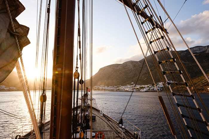Back aboard for lunch, we sailed out of the harbor and were treated with a presentation by historian Tom Heffernan on the “The Great Betrayal: Venice’s Treachery Against Constantinople and its Subsequent Control of Greece and the Cyclades,” after which the Captain sent the crew aloft to set sails for a relaxing afternoon.