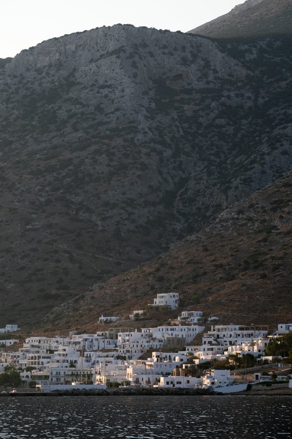 This morning Sea Cloud sailed into Kamares bay on the west side of the island of Sifnos. We took the Zodiacs ashore and boarded our buses and drove to the east side of the island where the ancient acropolis and medieval center known as Kastro, is located. On the way we marveled at the number of whitewashed churches on the hilltops. Our guides took us on an orientation walk around the town of Kastro, which is a characteristic town where the houses have their backs facing outwardly creating a fortification wall. The vistas of the Aegean around us impressed us but the interior of the village was a big surprise. The houses were on two or three levels and had embedded in their walls ancient columns and capitals of the doric and ionic style.