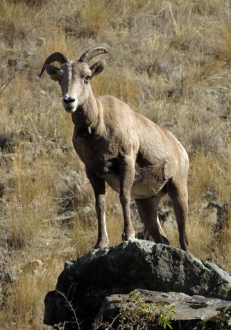The further upriver we went, the narrower the canyons became and the more dramatic the scenery. Our jet boat drivers told us the history and natural history of the area. Along the way their keen eyes spotted plenty of wildlife. We saw three different groups of Rocky Mountain big horn sheep, lots of mule deer, an osprey, a bald eagle, large groups of turkeys, great blue herons, and a variety of waterfowl.