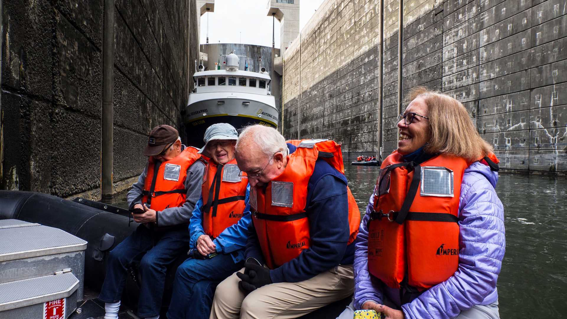 Just as the sun rose in the eastern sky, the National Geographic Sea Lion started its approach to Ice Harbor Lock. Our transit through the lock was the first of a number of activities for the day. About mid-morning, we approached Lower Monumental Lock, with the option of going through in our Zodiacs, which was a unique experience, and enjoyed immensely by all that participated! Continuing our morning cruising the Snake, we approached the Palouse River, the site of our afternoon activities: Zodiac tours, kayaking, and the chance to go to Palouse Falls for a very scenic overlook. Finally, after all guests and staff were back on board, the Sea Lion continued on her way up the Snake, going through our last two locks of the journey, and ending the next morning at Clarkston, Washington.