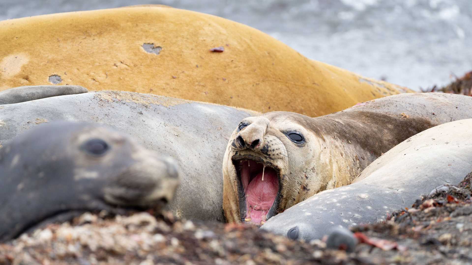No more ice for us today! We left mainland Antarctica and made our way to the South Shetland Islands where wildlife and history awaited us. Our first stop was Snowy Island, full of ellies (aka southern elephant seals) and their pups, lichen and grasses, and the nesting sites of southern giant petrels. After enjoying the antics of the ellies, we made our way to Deception Island where we sailed into the heart of the caldera of an active volcano. Steam rose from the beach, enshrouding the remains of a whaling station in an aura of solemn mystery.