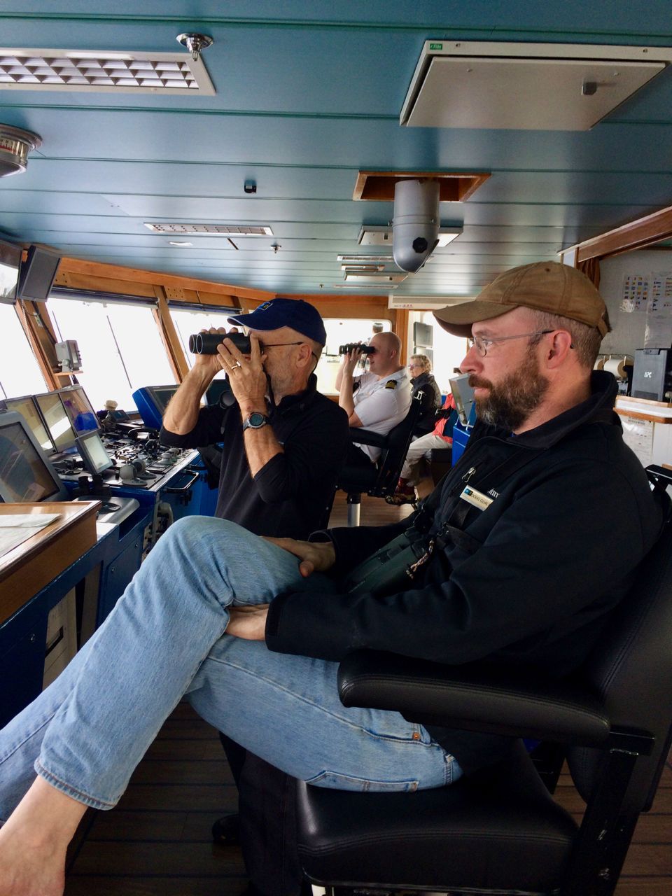 We woke up early in the morning as National Geographic Islander navigated along the northern part of Isabela Island. Slowly the sun appeared above the clouds surrounding Volcano Wolf. We spotted our first birds as Galapagos fur seals returned to shore from their night hunt. We enjoyed a great breakfast. Afterward, expedition leader Vanessa called everyone to the bow to celebrate as we crossed the equator. Our guests happily crossed the line. Approaching Punta Vicente Roca, the visitor site, we spotted Galapagos sea lions and a good number of ocean sunfish. The first activity of the day took place as we dropped anchor at Punta Vicente Roca. This is a spectacular geological site. The combination of the former volcano’s tall cliffs and the tuff cones formed later adds an amazing contrast to this unique visitor site. Our best tools for exploration, our Zodiacs, were lowered down, and off we went to explore the coast. We observed Nazca boobies and blue-footed boobies resting on the small ledges of the tuff cones. Galapagos sea lions swam close to our Zodiac, and Galapagos penguins rested on a broken piece of the tuff cone after feeding. What a wonderful sight! In a calm area, we found a good number of Pacific green sea turtles. The morning’s activities ended with snorkeling. Pacific green sea turtles, plenty of colorful fish, Galapagos marine iguanas and flightless cormorants surrounded us. It was a phenomenal experience! The ship was repositioned toward Fernandina Island. The youngest island of the archipelago, Fernandina is a highlight of our expedition. This island shows our guests the beginning of life. We observed animals thriving in the hostile environment. Pioneer plants like lava cacti grow on the lava fields, breaking down rocks little by little to create soil for the next generation of plants. Punta Espinoza is known for its huge colony of Galapagos marine iguanas. It is hard to distinguish the iguanas from rocks since they are so dark in color. On the other hand, colorful Sally Lightfoot crabs added contrast to the young, dark lava fields. We ended our walk as the sun was setting, returning to the ship with great memories. It was a fantastic day in the western part of the archipelago.