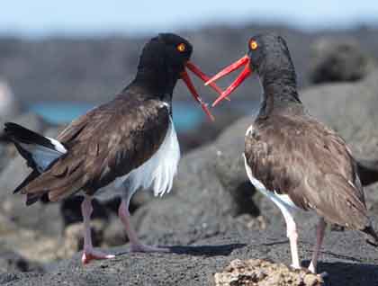 With a “panguero” and naturalist in each Zodiac, we admired the extensive lava flow on island of Santiago that dates from 1897. Sharp-eyed guest Marea spotted a penguin swimming in the distance and we motored along behind it as it sped through the turquoise water! Later that same flightless bird swam among all the Zodiacs so everyone was able to catch a quick glimpse of a Galapagos penguin. There were lava herons (also known as striated herons, but many of us prefer their previous common name!) fishing, and marine iguanas sunning. I pointed out the amazing endemic Galapagos tomato plant—it is adapted to this salty arid zone and being studied for possible use in domestic plant research by a direct descendant of Charles Darwin!