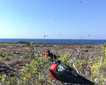 Soon after the kayakers left, the rest of us boarded Zodiacs. Although I told everyone they could come in their pajamas if they so wanted, all were dressed and ready to go. It was a great ride, but only one successful penguin sighting! They are, indeed, difficult to see right now in the middle of the warm, wet season. During this time of scarcity and warm water (79 degrees F! 26 degrees C!), they search out up-wellings. To my surprise, when I got into the water after breakfast, there WAS a cold layer of water just a couple of feet beneath us! The season is starting to change, perfectly normal for mid-April and the albatross have arrived down south on Espanola Island! A definite indicator of seasonal change.