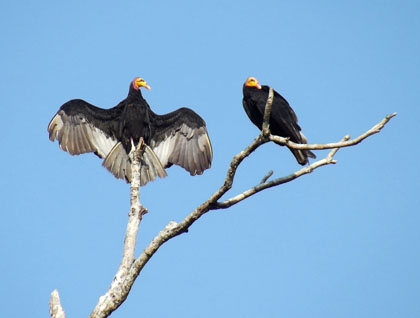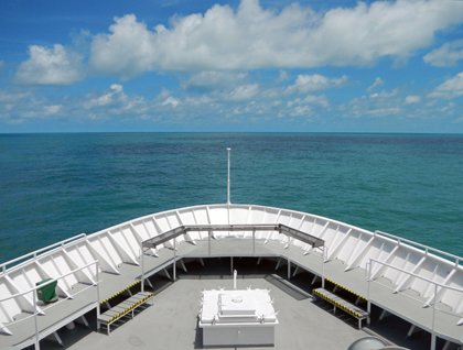 We experienced a very relaxing morning at sea, which allowed us to recuperate from the past two or three days of excursions in Trinidad and Tobago. Because of our late departure last night from Port of Spain, Trinidad, we decided to wait until this morning before conducting our Lifeboat Muster exercise. This also gave us a chance to introduce the full compliment of Lindblad Expeditions staff naturalists and National Geographic lecturers and photographers. There wasn’t a lot of marine life to be seen this morning, apart from a few bottlenose dolphins, flying fish, a magnificent frigatebird, and a lone masked booby. What we did see in abundance, however, were oil rigs dotting the relatively shallow and calm seas off the coast of Venezuela. Today, Venezuela is one of the most important oil-producing countries in the world, and this is also the most important aspect of its national economy. In the late morning, we suddenly encountered greenish tan-colored water that gave evidence we were approaching the mouth of the Orinoco River. The silt-laden fresh water outflow from the river does not immediately mix with the Caribbean Sea’s salt water and the surface meeting line of the two different densities of water (fresh water versus salt water) was very obvious. As the day wore on, the water we were sailing in got muddier and muddier and as we closed in on the river mouth itself, many more species were observed, including various land birds, shore birds, and terns. We also noticed trees, logs, and aquatic plants, such as water hyacinths, that had floated downstream and were well on their way out into the ocean. By mid-afternoon, we picked up our river pilot somewhere within the long excavated channel leading into the Orinoco River. Soon, the magnificent tropical rain forest could be discerned on either side of the ship, first by binoculars and later by one’s naked eyes. The late afternoon clouds were very impressive, and we could pick out huge cumulo-nimbus clouds forming into thunderheads far away over land. As our vessel came closer to the eastern shoreline, we could see it presented us with an impenetrable wall of greenery. This flooded edge of the forest is composed of water-resistant trees and all sorts of water plants. It was surprising to suddenly see river people appear occasionally from out of nowhere, it seemed, in small dugout canoes in order to wave to us and ride over our wake. Farther upstream, we began seeing a few widely scattered stilt houses along the forest edge. There were also inviting little tributaries that led into the dense tropical rain forest, which seemed to be beckoning to us. Some people would look at all this and think it something of a “Green Hell,” while others, such as us Lindblad Expeditions naturalists and guests, see it as a kind of “Green Heaven.” We anchored around sunset near the mouth of a tributary called Rio Araturi, and immediately spotted some red howler monkeys in the tree tops. Another wildlife highlight here, just before dusk, was the sighting of a small flock of blue and gold macaws. This looked like an ideal place to conduct a night expedition. So, after an early buffet dinner, about half our compliment of guests opted to go out with us on a night excursion. Everything really looks different in the dark. It was great fun to explore along the jungle’s edge, using powerful handheld spotlights with which to search for the eyeshine of creatures in the trees and bushes. Several interesting animals were spotted, including a couple unidentified mammals in trees, bats, a tree boa, various frogs, a big water spider, and more. Viewing the vegetation up close was also interesting, and we pushed our Zodiacs deep into some narrow, little tributaries where we had to maneuver through brush and duck under overhanging vines and branches. The waning moon, which was just a couple days past its full stage, rose during our venture and gave us some extra light to help us find our way around the river system. It was a near perfect excursion…both adventurous and fun.