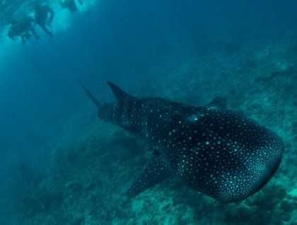 Today was a day that many of us were looking forward to for the entire trip.  We were hoping to have the opportunity to not only see, but snorkel with the largest of all fishes, the whale shark.  Reaching sixty feet in length, these “gentle giants” are amongst the most beautiful creatures in the world.   Ari Atoll is one of the places in the world with the best chances of encountering whale sharks, and this was our goal for the day.