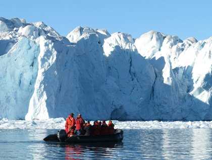 National Geographic Explorer anchored up at a beautiful glacier, and we split up in groups hiking 1,200 feet to the nearest mountain, and Zodiac cruises for the rest of us. The hike showed great fossils on the way up the mountain and a fantastic view at the top over the bay with the ship anchored.
