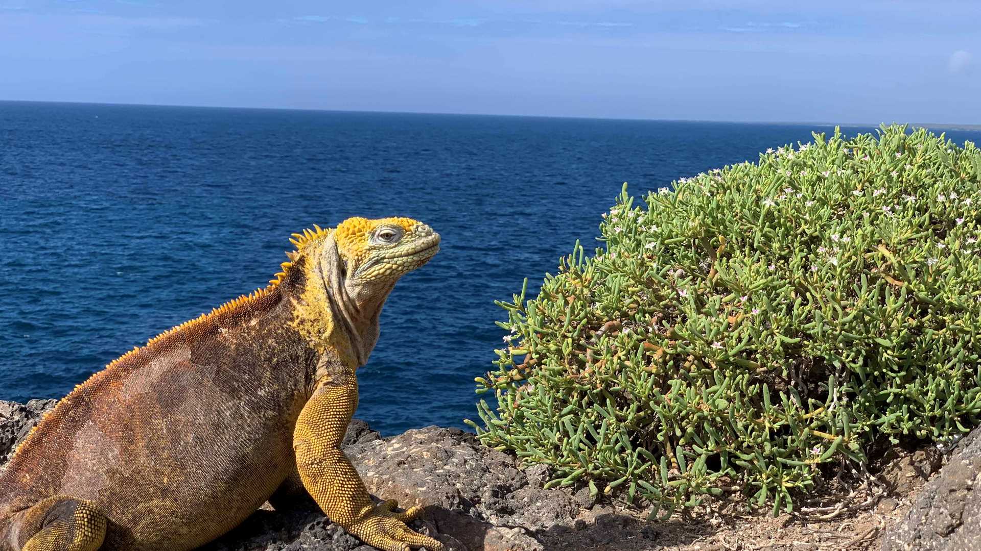 Located east from Santa Cruz Island, South Plaza Island offers an incredible landscape and plenty of wildlife. During our morning walk, we observed Galapagos land iguanas all along the trail, several of which were feeding on yellow flowers. Along the cliffs, there were swallow-tailed gulls. Blue-footed and Nazca boobies were in flight and showing their feet to those of us admiring from below. Magnificent frigatebirds were gliding and several pelicans and red-billed tropic birds made their appearance! The afternoon was spent at Santa Fe Island, where inside the calm bay our guests got out on kayaks and paddleboards for a water-level vantage of the area. A long and a short walk commenced after, affording our guests intimate closeups of the unique Santa Fe land iguanas! What a gorgeous day in paradise!