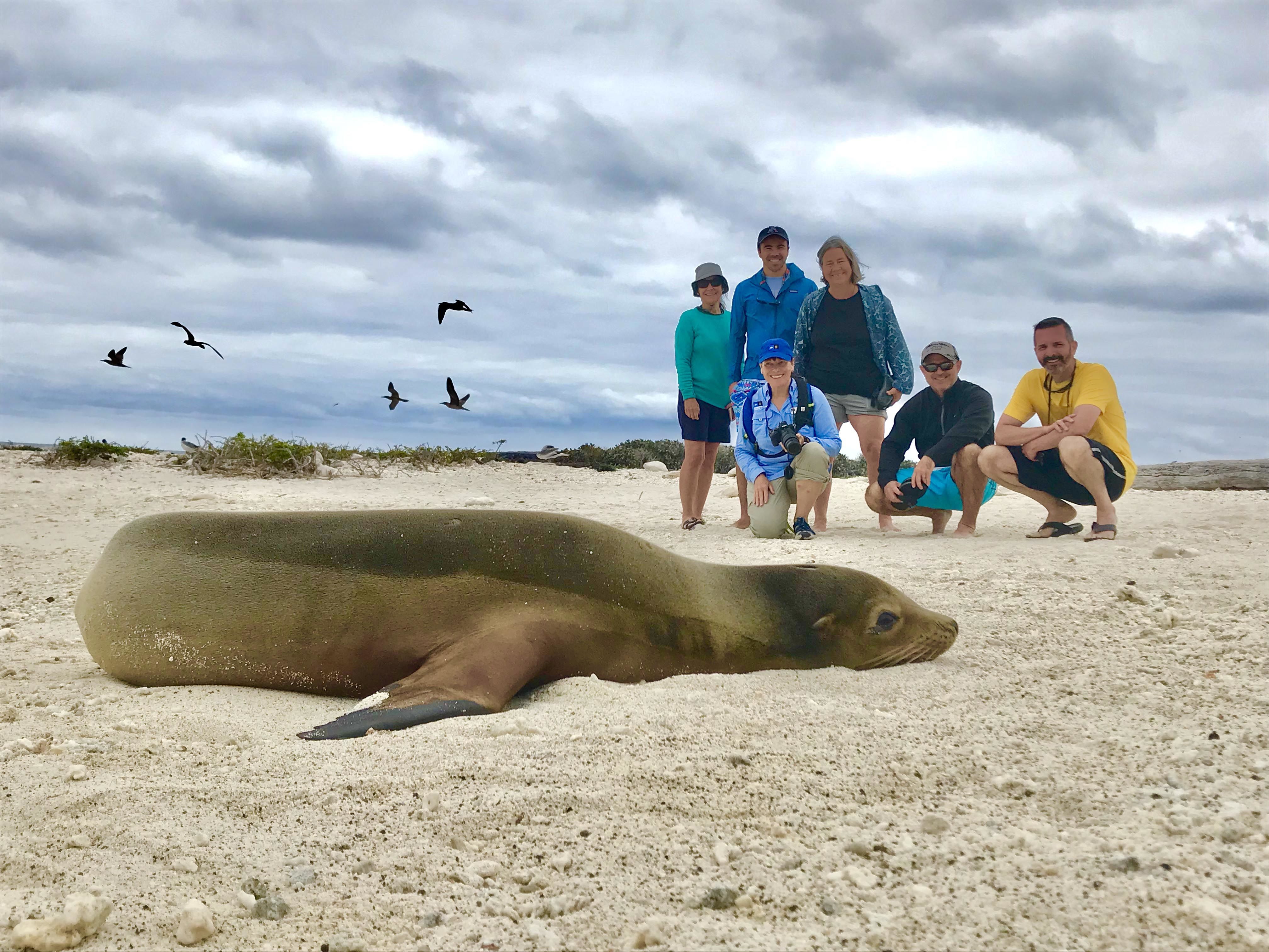 It’s our first full day of expedition on National Geographic Islander . We started our day with a morning hike on North Seymour, which is one of the best islands to observe nesting colonies of frigatebirds, blue-footed boobies, swallow-tailed gulls, and many more species of marine birds. Later in the morning, National Geographic Islander navigated to the beautiful Rabida Island, where we enjoyed an amazing afternoon. Guests swam and snorkeled with sea lions and many different species of reef fish off the red sand beach. We walked to a pond located behind the beach and observed flamingos nesting after more than 20 years on this island.