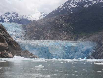 We began our day close to the end of Tracy Arm. Icebergs and milky jade-green water made it clear that tidewater glaciers were nearby. And sure enough, we sighted the South Sawyer glacier.