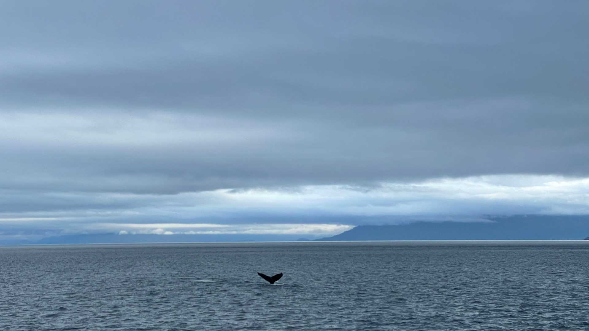 There is nothing that welcomes you to Alaska quite like a morning surrounded by humpback whales. The quiet and cool of the morning brought us a distant bright light, with more than a dozen whales dancing beneath it. Some of them were even kind enough to show us their flukes, in hopes that we could identify them later. The whales in this location were going for krill, which our captain could see in a distinctive band 150 feet below the surface. The whales swam coolly, making quick dives before moving to their next location.