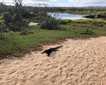 During lunch, the weather turned a little and the wind kicked up, but not enough to stop us as we headed out in Zodiacs to land on the rocks of Boltodden. Once landed, there was a surprise: a perfect set of dinosaur footprints? Set into the sandstone, the prints—about 30x30 centimeters—looked as through the animal had walked over the beach just hours ago.