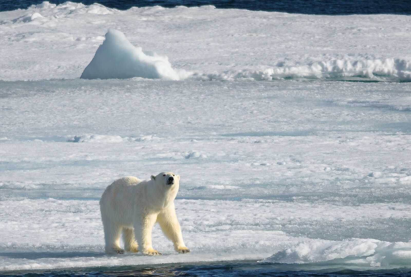 The final day of our voyage around Svalbard started off bright, with the sun’s rays glinting off the floes of pack ice surrounding the ship. In such ideal conditions, it didn’t take long for us to spot what we were all hoping for – a gorgeous polar bear on the pack ice. The animal proved inquisitive and approached National Geographic Resolution as she sat in position, our cameras at the ready on all the outer decks. It was a beautiful male in good condition, and it came to within 200 meters of the ship, giving us a lovely opportunity to observe it with the naked eye.