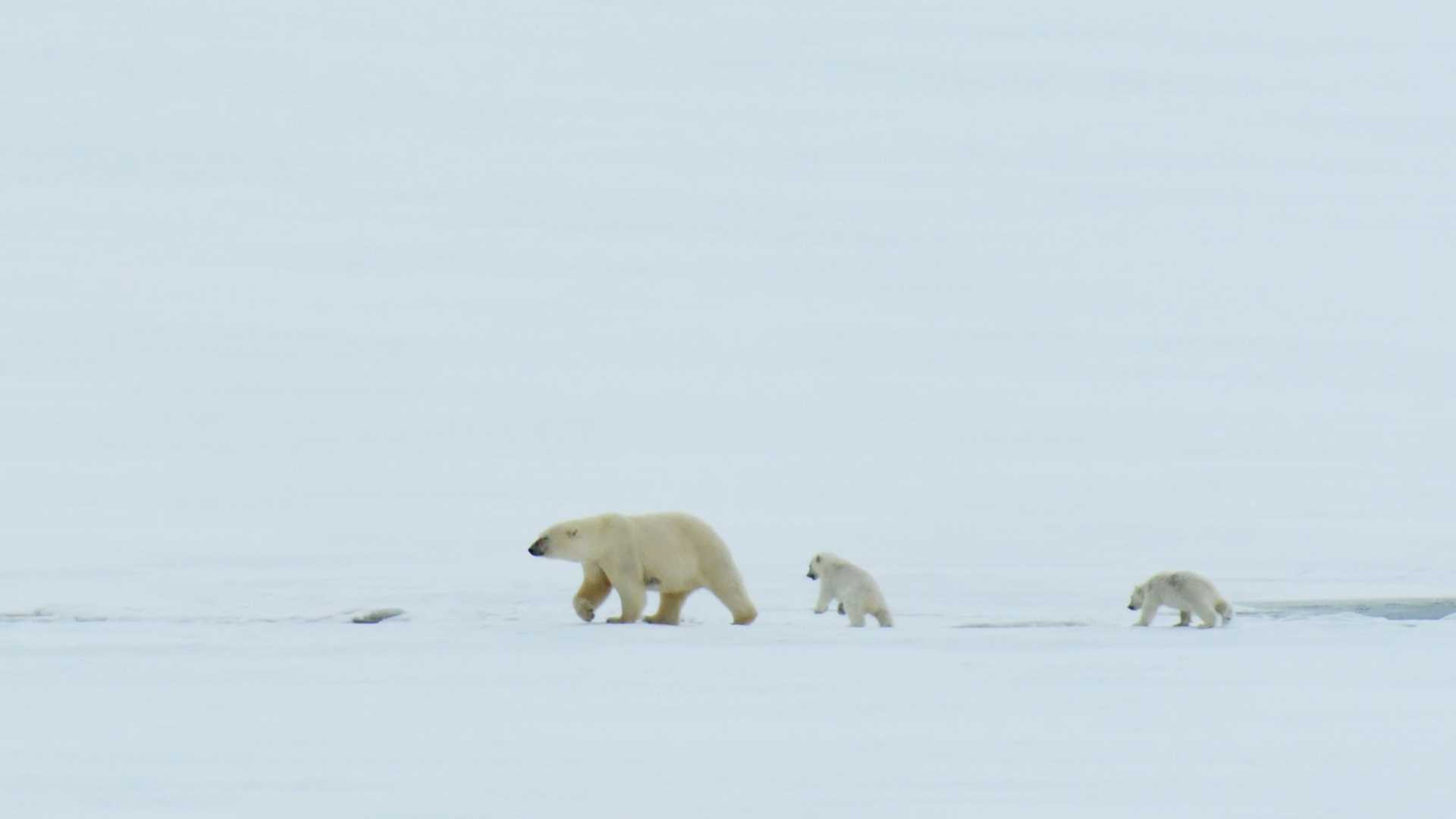 However, sometimes the best plans are spoiled. In this case, it was by the sighting of our first polar bears. In the next couple of hours, we saw two mothers, each with two cubs. One of the females led her year-old cubs in search of food and they delighted us as they continually played with each other. Along the way they found a puddle, spending a long time cavorting and generally having a lot of fun. We also saw one of the cubs stop and then pound a piece of ice repeatedly with its front paws; this behaviour is used by adult bears as they try to break the roof of snow concealing a seal under the ice. The other bear was a remarkable find, as it was poking its nose out of its wintering den up a snow-covered slope. Occasionally it would make itself more visible and, on several occasions, the newly-born cubs would make brief appearances.