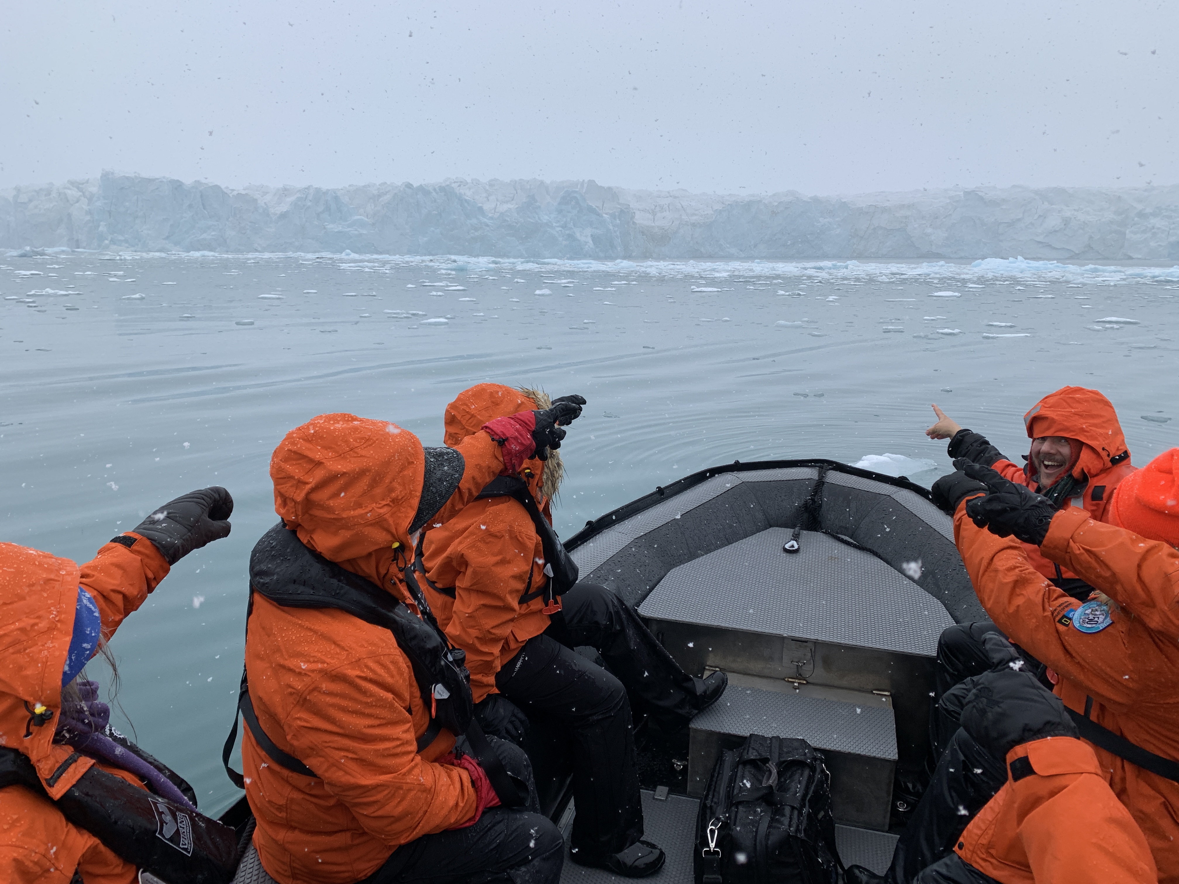 Our destination for the morning proved utterly beautiful. The green rolling hills, hanging glaciers, and wildlife were met with a small flurry of snow. This drastic change in the weather from yesterday provided a deep sense of respect for South Georgia and the life she brings. A light jaunt was in order for the morning, and we saw many young Antarctic fur seals running and roughhousing between the rolling hills. Snow fell lightly as our guests witnessed the largest colony of king penguins on the planet – over 250,000 breeding pairs!