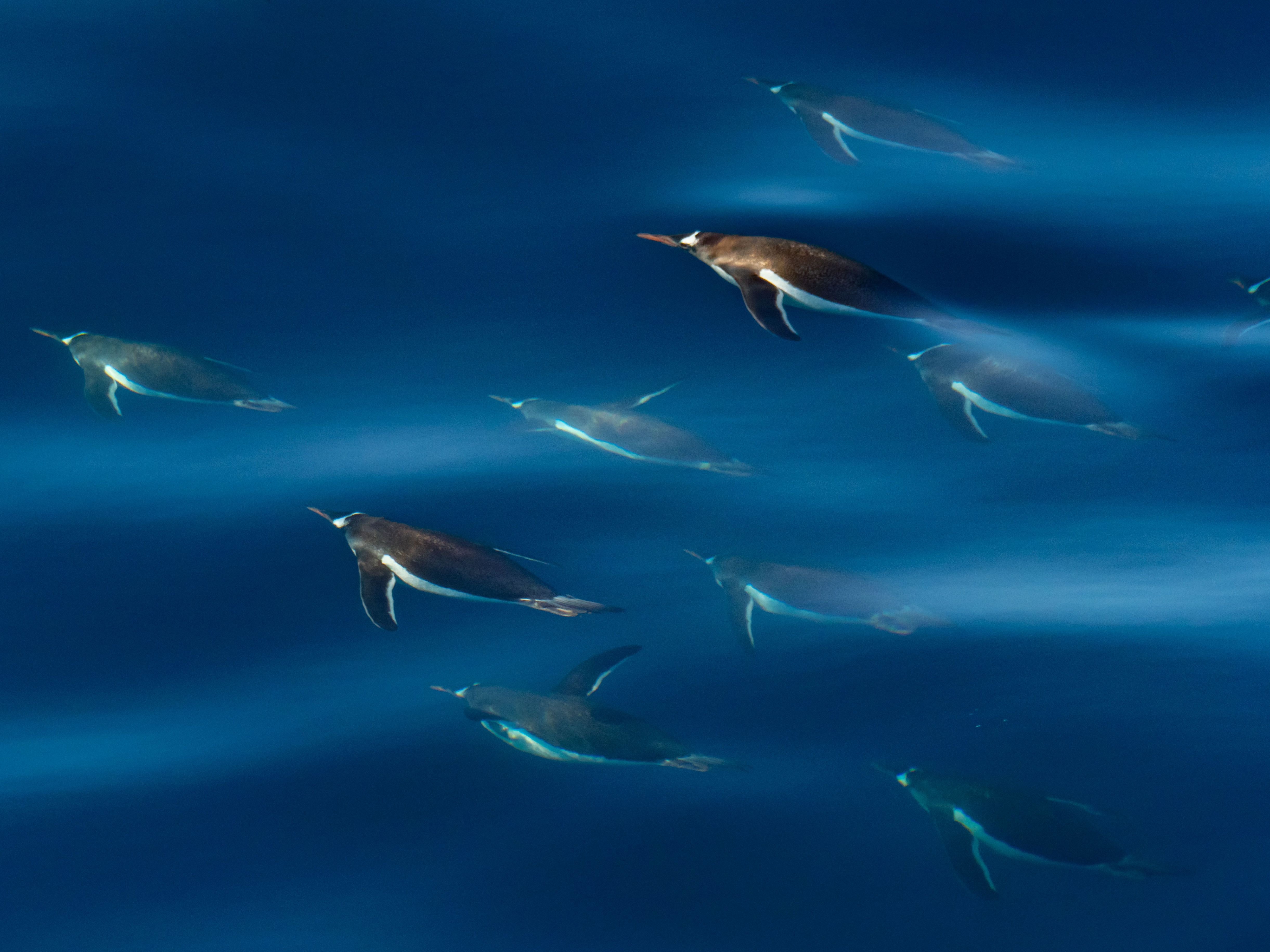 On shore some giant petrels were making short work of weak or sick penguins while, just off shore, others were cleaning up after their meal. These large, stocky, confident sea birds plunge their bloodied faces in and out of the water after a meal. Often oblivious to impressed onlookers.