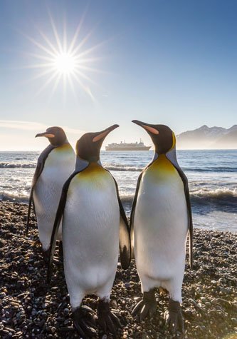 Long before the sun rose, the one and only early morning wake-up call for those willing to brave a first light landing came from our expedition leader, Lisa Kelley. We landed on the beach just before the break of dawn and watched and photographed in amazement as the sun painted the 6,000 plus foot summits of Mount Roots, Mount Kling, Mount Brooker, and Nordenskjold Peak with soft pastel pinks and yellows. Combined these snow-covered mountains make for an incredible backdrop for the largest king penguin and elephant seal colonies in all of South Georgia.