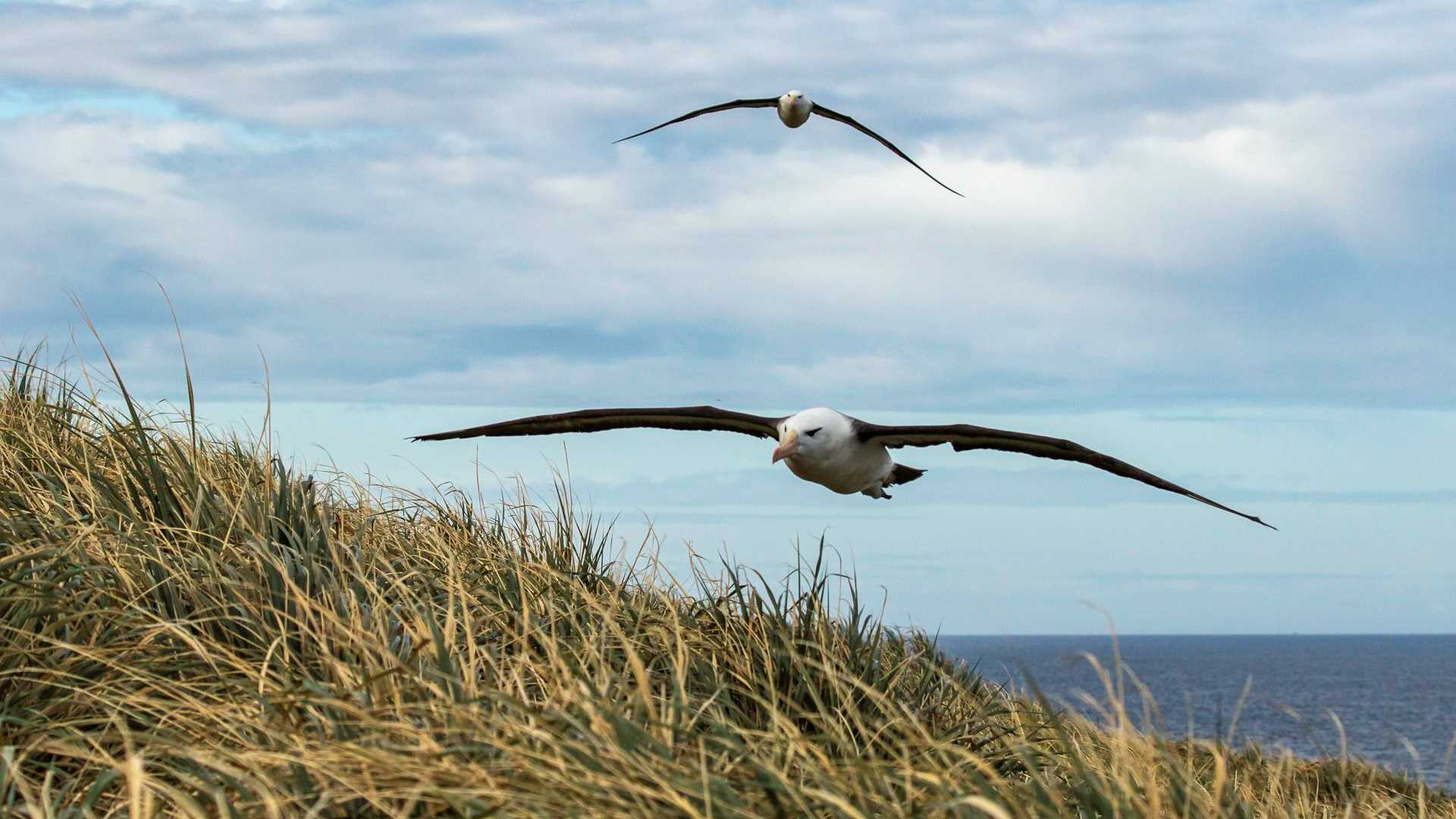 The Falklands Islands welcomed us today with their very best side. A beautiful sunrise over the graceful peaks of Steeple Jason Island promised us a lovely day to come and before long we were ashore, hiking over the low shrub vegetation and into the tall tussock grass on our way to visit the world’s largest breeding colony of black-browed albatross. In the afternoon we landed on West Point Island, where we were greeted by the caretakers, Jackie and Alan White. Another beautiful hike led us to another nesting site of albatross and rockhopper penguins and after hiking back we were invited into the snug farmhouse for a Falkland Islands farm tea, featuring a fantastic variety of cakes, cookies, and fresh scones.