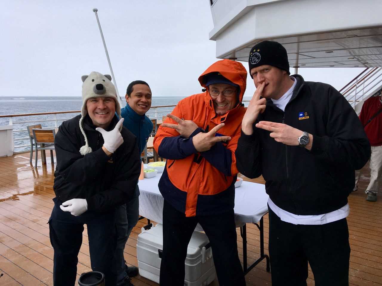 Out on the deck, during a lecture, the hotel/galley team was preparing a BBQ. There would be lomitos and red wine. Lomitos are small sandwiches made with lomo, more or less the tenderloin cut of Argentine beef. The beef is from grass-fed cows who are always walking. Our hotel manager, Patrik, said that while the meat’s delicious, it’s a little tough, so he beats it a bit, like abalone, before grilling it. It’s so worth the work! Out on the back deck, with a sandwich and red wine in hand, with friends and new acquaintances in the cold Arctic air, staring at the top of the ice and under the mountains, we can only wait for what is next, while enjoying what we have now.
