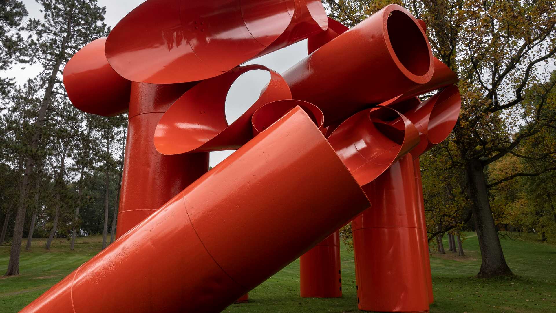 Nestled in the mountains of the Hudson Valley is a unique natural area and open-air museum, Storm King. In this five-hundred-acre sanctuary, guests can visit huge, outdoor installations of sculpture that would be impossible to house in a traditional indoor museum. The artwork is dispersed among the beautiful trees and meadows of the reserve, adding to the beauty and grandeur of the pieces. We walked at our own pace, enjoying both the art and nature. The changing colors of the leaves during this spectacular fall season gave a new dimension to the sculptures in this iconic setting.