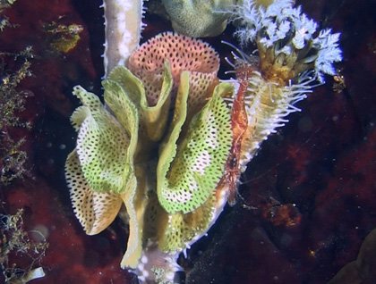 Taking advantage of favorable conditions, Magnus the baker, Max the cook, and I left Stromness and headed east to the tall cliffs of Grass Island. South Georgia’s nutrient rich waters and relative clarity allow kelp to grow very deep, often obscuring interesting marine life. However, on today’s dive, we found an incredible overhanging wall plastered with every imaginable invertebrate and even some that seem totally alien.