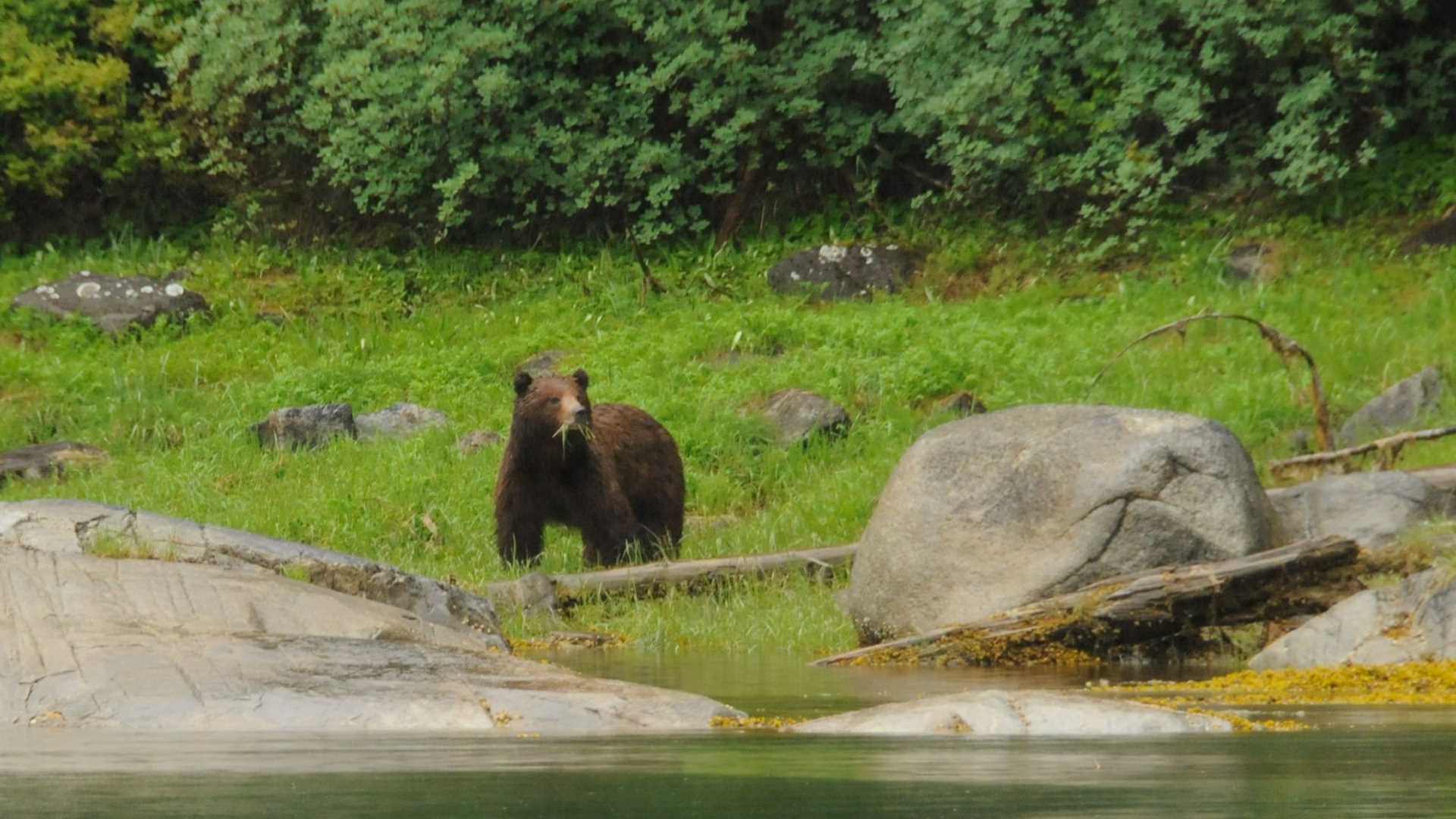 Our final day aboard National Geographic Sea Bird began in Pavlof Harbor. The first coastal brown bear we sighted was a lone juvenile resting at the mouth of the stream, nestled amongst the rocks. We slowly headed to the falls to find a burly adult stalking salmon in the middle of the stream. As the season winds down, these bears are over double their spring weight. While they have been foraging all spring and summer on sages, grasses, berries, and more, the true calorie loading comes from their end of summer salmon feast. Every few minutes, this adult caught yet another salmon, only to gorge on the brains, eggs, and skin. The remaining bits are too muscly for the bears. Strolling along the edge of the stream after its nap, the juvenile joined in the salmon feast. While the adult patiently stalked its next salmon, the juvenile was less patient, often losing focus and staring around. It even appeared to avoid getting too wet by sitting, frog style, on a middle rock. A few minutes into our second round of bear sightings, we observed as a mother and two cubs approached! One quick swipe in the water, and this momma bear caught her first female salmon. She took a clean bite of the tail end, and out poured fresh salmon roe. The two cubs pushed in for a share of mom’s catch, each taking a chunk of the skin for themselves as well. While mom was willing to share, it seemed like one of the cubs was quite talented in the art of fishing. After a few tries, this new cub had already caught its first salmon. With a look to the right, the juvenile was still sitting above the rock, maybe afraid to intervene, or perhaps less of a hunter. Either way, the bear sat, still looking around and waiting for an easy target. We began this week with glacier carved fjords, stunning and close views of glaciers, and moments with marine mammals. We completed our journey at the stream along with the salmon. They come here to spawn and die, and their nutrients are recycled into the forest and animals around us. With such documentary worthy moments captured in our memories and in our photos, we headed back to the ship with an overwhelming sense of awe. I know that you are probably thinking nothing could make this day any better. Alas, this is Lindblad, and during the afternoon, we cruised the area in search of humpback whales. A few hours into our search, we found a relatively fast group of bubble-net feeding whales. With their surface feeding visible from the bow, naturalists and guests alike were shouting for joy. Later in the evening, we identified four of the six whales we sighted, learning that most of them have been sighted migrating to Hawaii for the winter. The evening closed with one final recap, our guest slide show, and conversations into the twilight. I could not think of a better send off from our time here in Southeast Alaska. Until next time! Photo caption: Visiting Pavlof Harbor and Chatham Strait.