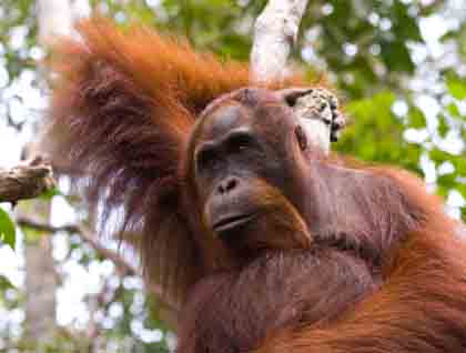 The sun was still low on the horizon when we disembarked National Geographic Orion heading towards Tanjung Puting National Park. The air was filled with smoke from fires in the nearby forest and some of the palm oil plantations. Fortunately, the smoke cleared shortly after we had entered the Sekonyer River and we were able to fully enjoy our two-hour Zodiac ride upstream. We cruised along lush jungle and were very fortunate to catch a first glimpse of the funny looking proboscis monkeys with their long noses. These primates are endemic to Borneo and absolutely fascinating.
