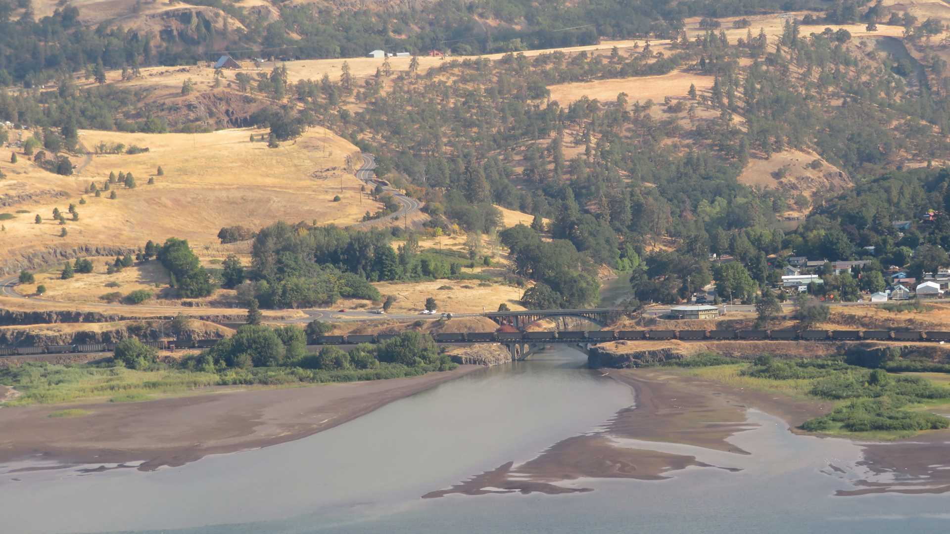Here we are in The Dalles, Oregon. It is not ‘Dalles’ or ‘Dallas,’ but rather ‘The Dalles,’ one of the most historic towns in the state. It was called Le Dalle by the early French trappers, which means flat topped rock or flagstone, as seen in the flat-topped basalt islands that surround the Highway 197 bridge. After dinner last night, we transited two dams, the John Day Lock and Dam and The Dalles Lock and Dam just before sunrise. The Dalles Dam has had the greatest impact on the history and culture of the Pacific Northwest. When it was closed on March 10, 1957, many native locations were submerged behind the dam.