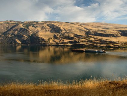 With Celilo Falls being the heart of native salmon fishing, people from all over the west came to the great river to trade for the life-enriching protein caught in the reoccurring seasonal fish runs. With the construction of the hydroelectric dam at The Dalles, Celilo was inundated and lost as it submerged under the rising waters. Now push boat tugs tend to barges of grain, French fries and other commodities along the river passing over Celilo without so much as the evidence of a ripple of its tumultuous past.