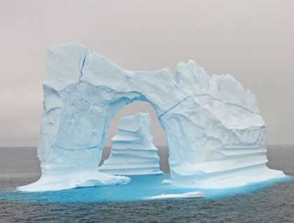 Here and there large icebergs were breaking the scenery of water and flat ice. One big iceberg had a beautifully shaped arch. Captain Oliver piloted the ship around this rare formation to let everyone get a perfect view.